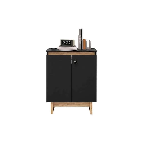 Armário de Escritório Los Angeles c/ 2 Portas Preto/Carvalho - Politorno