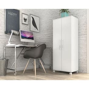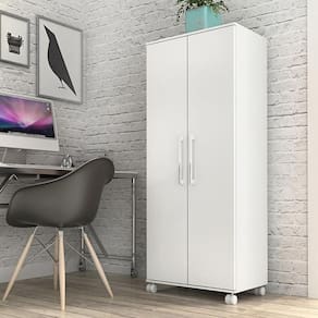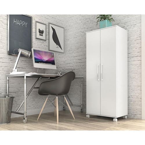 ARMARIO DE ESCRITORIO | Com 2 portas, prateleiras internas, dobradiças metálicas, puxadores cromados e rodízios faz do armário de escritório um móvel com design sofisticado, é própria para pessoas exigentes com organização, sendo feita em MDP de 15mm nas portas e MDP 12mm para prateleiras, laterais e tampos. Suporta pesos de até 8kg em suas prateleiras e 15kg no tampo suficiente para acomodar diversos materiais de escritório. Seu maior diferencial são os rodízios que facilitam a movimentação do produto para limpeza.