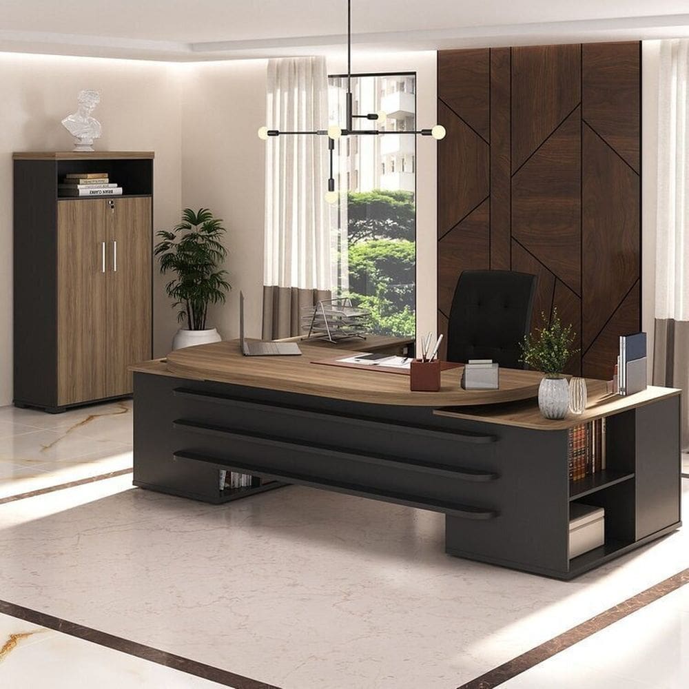 armario de escritorio preto com gavetas