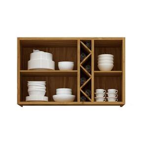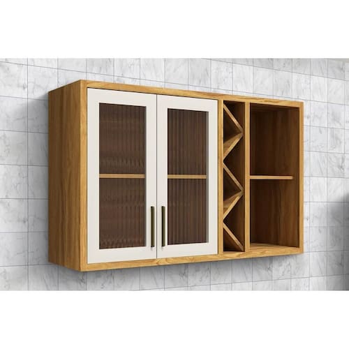 Armário Aéreo p/ Cozinha Tempranillo c/ 2 Portas c/ Vidro Canelado Nicho e Adega 120cm Amendoa/Off White - Ronipa