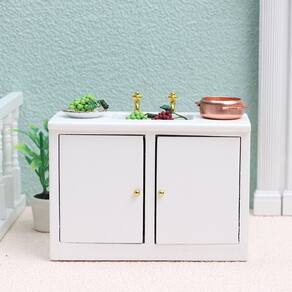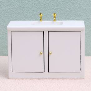 Dimensões: Comprimento 10,6 cm x largura 4,6 cm x altura 7,5 cm (excluindo a altura da torneira) Material: madeira Peso: 80 g Armário de pia em miniatura Lavatório de madeira em escala 1:12 com bacia branca, torneiras douradas e armazenamento com porta dupla, perfeito para configurações de banheiro ou casa de bonecas. Acabamento branco clássico Feito de madeira com um revestimento branco liso, este mini armário de pia oferece uma aparência limpa e elegante para interiores de brinquedos de teatro e coleções de móveis em miniatura. O design funcional apresenta portas de armário duplas detalhadas com maçanetas douradas para maior realismo, tornando os arranjos em miniatura mais autênticos para colecionadores e cenas de brincadeiras de fingimento. Uso seguro e ajuste em escala Este produto é um modelo de brinquedo, não destinado ao uso real. Adequado para casas de bonecas e bonecas em escala 1/12; brinquedo não infantil, evite que crianças engulam ou se machuquem acidentalmente. Acessório de minicasa versátil. Ideal para microcenas de banheiro ou banheiro, esta mobília de casa de bonecas enriquece as miniconfigurações, aprimorando a decoração de brinquedos de fingir e projetos de colecionadores de bricolage.