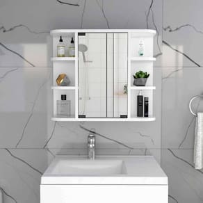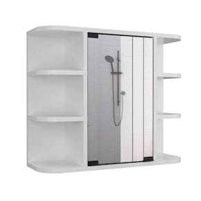 Elegância e funcionalidade são a melhor forma de descrever o armário de remédios TuHome White Modern Engineered Wood Milan. Uma porta de armário espelhada e várias prateleiras arredondadas expostas, protegidas de bordas nocivas, fornecerão um ótimo produto para seu banheiro. Duas prateleiras ocultas e seis prateleiras abertas no total ajudarão você a manter as coisas organizadas e práticas e, ao mesmo tempo, ter uma aparência incrível. Acabamento: branco Características: Medindo 20" de altura por 23,6" de largura Três prateleiras abertas em cada lado Porta de painel espelhado no centro para maior privacidade Prateleiras arredondadas Fácil de montar Garantia de 1 ano Especificações: Dimensões do produto: 23,6 “L x 7,5" x 19,7” H Montagem necessária: Sim Material: madeira de engenharia Cor/acabamento: branco