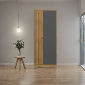 A segurança também é um ponto de destaque, graças à presença da fechadura nas portas de giro, permitindo armazenar documentos, produtos ou itens pessoais com total tranquilidade. O design ainda conta com detalhe ripado e puxadores sofisticados em ABS, além de pés plásticos que oferecem estabilidade ao móvel.