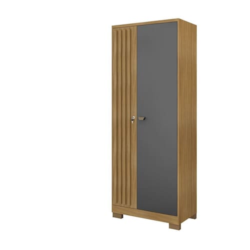 A segurança também é um ponto de destaque, graças à presença da fechadura nas portas de giro, permitindo armazenar documentos, produtos ou itens pessoais com total tranquilidade. O design ainda conta com detalhe ripado e puxadores sofisticados em ABS, além de pés plásticos que oferecem estabilidade ao móvel.