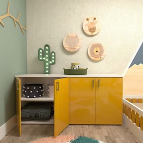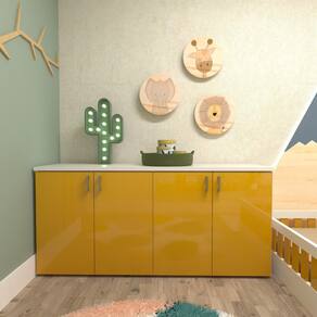 Armário Duplo Baixo Infantil Corp Bramov Móveis Branco/Amarelo. Os Móveis devem ser escolhidos com muito carinho, independente de qual for o ambiente, pois eles fazem parte da rotina do dia a dia do nosso lar ou trabalho. Portanto, na hora de decidir qual modelo, lembre-se: além de ter a ergonomia necessária, a medida ideal, um design incrível, eles também devem cumprir suas funções com desempenho total, e na hora da escolha das cores, elas devem combinar com seu estilo e personalidade. Os Armários Baixos da Bramov Brasil possuem um design encantador, que permite trazer outros elementos decorativos para compor o ambiente. Ean: 7909903235492