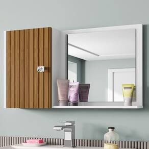 Cor: Multicolorido | Altura: 47 cm | Largura: 57 cm | Peso do produto: 6 kg | Tonalidade: Multicolorido | Produto: Armario Espelheira | Material: MDP Cor: Branco Ripado