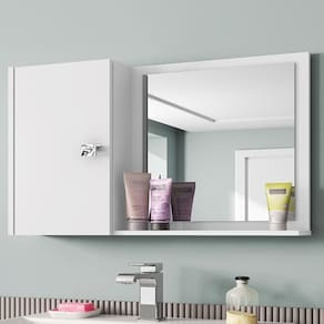 Cor: Multicolorido | Altura: 47 cm | Largura: 57 cm | Peso do produto: 6 kg | Tonalidade: Multicolorido | Produto: Armario Espelheira | Material: MDP Cor: Branco