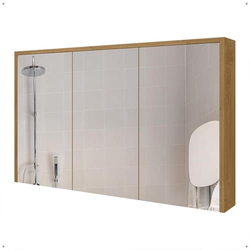 Armário Espelheira Banheiro Trindade 3 Portas Com Amortecedor Madeirada Este armário de banheiro possui três portas com espelhos, proporcionando uma ampla área reflexiva que ajuda na rotina diária. As portas são equipadas com amortecedores, garantindo um fechamento suave e silencioso, prevenindo batidas e aumentando a durabilidade do móvel. Além de funcional, o design espelhado adiciona um toque moderno e elegante ao ambiente do banheiro.