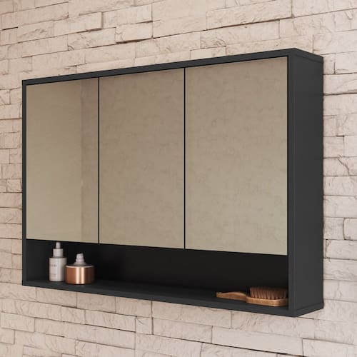 Conheça o armário aéreo para banheiros com espelhos Art In Móveis, desenvolvido para otimizar o espaço e guardar pertences. Aproveite! Este produto foi produzido em excelente material MDP de madeira reflorestada ecologicamente correta e com acabamento Finish Foil Acetinado, que garante maior resistência e qualidade em seu móvel. A essência de criar soluções que trazem mais conforto sua vida. Esse é o grande diferencial dos produtos Art In Móveis. Cada nova ideia é uma mistura de criatividade, funcionalidade e muita dedicação. Acabamento da Porta: Finish Foil Acabamento da Prateleira: Finish Foil Altura do Espelho: 45 cm Ambiente Principal: Banheiro codigo_ean: 7900288277817 Complexidade da Montagem: Média: pode ser montado por mais de uma pessoa e/ou necessite de maior conhecimento para montagem Composição: 100% MDP Cor: Grafite Cor do Produto: GRAFITE Cor Flex: Não Cor Interna: Preto Escala de Brilho: Fosco Espessura do Espelho: 3 mm Espessura do Material da Estrutura: 15 mm Formato do Espelho: Retangular Formato Espelheira: Retangular Itens Inclusos: 1 Aéreo, Kit Ferragens e Manual de Montagem Largura do Espelho: 28 cm Linha ou Coleção: Banheiro Manual de Montagem e Instalação: https://product-hub-prd.madeiramadeira.com.br/582410718/documents/309f387d-47f8-4b8b-8f48-7f560eb47d363297428522517616946606375.pdf Marca: Art in Móveis Material da Porta: MDP Material da Prateleira: MDP Material Principal: MDP Montagem Flex: Não Necessita Montagem: Sim Origem do Produto: Nacional Peso: 15 kg Peso Máximo por Prateleira: 5 kg Possui Espelho: 03 Espelhos com Tamanhos Iguais Possui iluminação: Não Possui Portas: 03 Possui Prateleiras: 04 Possui Toalheiro: Não Possui Tomadas: Não Recomendações de Uso, Manutenção e Limpeza: Para a limpeza do móvel utilizar pano levemente umedecido Sistema de Montagem: Parafusos, cavilhas e minifix Tipo de Dobradiça/Corrediça da Porta: Metálica Tipo de Fixação do Espelho: Silicone Tipo de Porta: Bater Tipo de Puxador da Porta: Não Possui