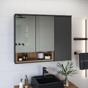 - Mais organização e espaço interno, com 3 prateleiras funcionais. - Portas com espelho, que unem praticidade e estilo. - Design sofisticado, ideal para complementar a decoração do banheiro. - Material resistente e de fácil limpeza, com acabamento fosco. - Perfeita para banheiros compactos, otimizando o espaço vertical.