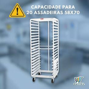 O armário esqueleto tem capacidade para 20 assadeiras ou esteiras de 58x70, em aço carbono com montagem fácil.
