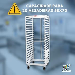 O armário esqueleto tem capacidade para 20 assadeiras ou esteiras de 58x70, em aço carbono com montagem fácil.