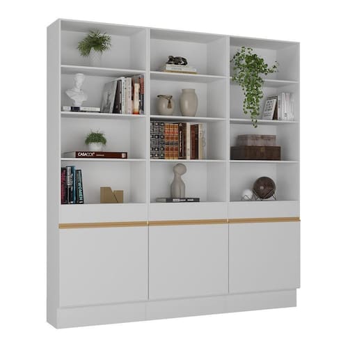 Armário/estante Escritório 3 Portas Multimóveis Mp7001 Branco/dourado Branco/dourado O Armário/Estante Escritório 3 Portas Multimóveis MP7001 é a solução perfeita para organizar seu ambiente de trabalho com elegância e praticidade. Produzido em MDP, possui um acabamento acetinado (cerca de 20% de brilho), garantindo um visual sofisticado. Com 3 portas com puxadores em ABS, você pode guardar seus pertences com segurança. Além disso, conta com 9 prateleiras espaçosas (suporta 5kg cada) para armazenar livros, documentos e objetos decorativos. Esse armário é o móvel ideal para tornar seu espaço de trabalho mais funcional e bonito. Os módulos são avulsos e você pode montar no seu ambiente na disposição que preferir. Conteúdo da Embalagem: 1 (um) Armário/Estante Kit Ferragem Manual de Montagem