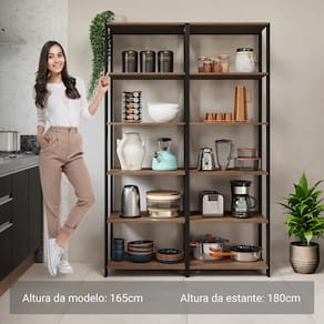 Com dez prateleiras amplas, o móvel pode armazenar louças, potes, eletroportáteis e mantimentos, mantendo tudo sempre acessível e bem distribuído.