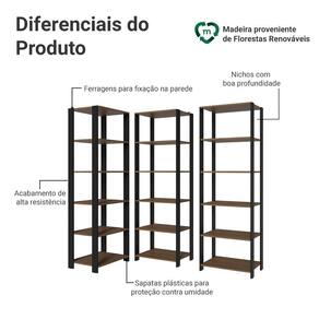- Três (3) Estantes abertas com cinco (5) prateleiras cada