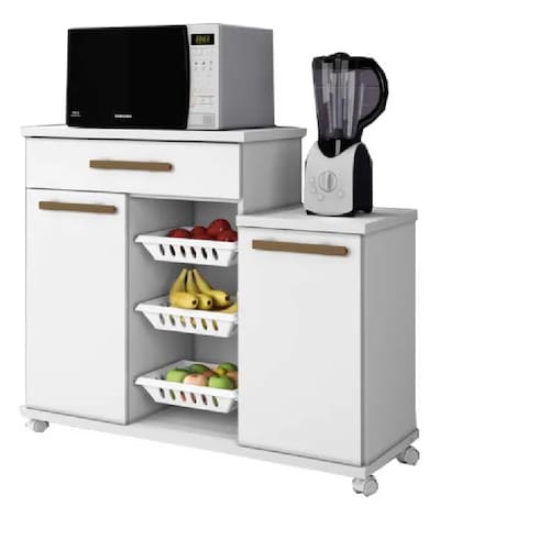 Que tal dar mais vida a sua cozinha com esta belíssima e prática fruteira? Perfeita para agregar mais funcionalidade a este ambiente. Utilize para organizar sua cozinha com versatilidade. Possui 2 portas com amplo espaço interno, gavetão, fruteiras em plástico, muito mais higiênicas, um tampo com excelente espaço e ainda possui rodinhas para facilitar a locomoção na hora da limpeza. Produto desenvolvido para deixar a sua cozinha mais bela e funcional.
