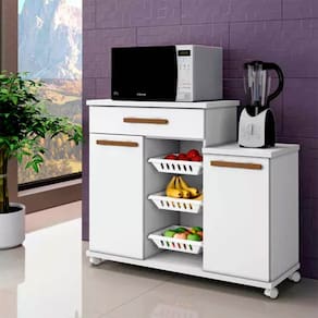 Que tal dar mais vida a sua cozinha com esta belíssima e prática fruteira? Perfeita para agregar mais funcionalidade a este ambiente. Utilize para organizar sua cozinha com versatilidade. Possui 2 portas com amplo espaço interno, gavetão, fruteiras em plástico, muito mais higiênicas um tampo com excelente espaço e ainda possui rodinhas para facilitar a locomoção na hora da limpeza. Produto desenvolvido para deixar a sua cozinha mais bela e funcional.