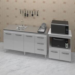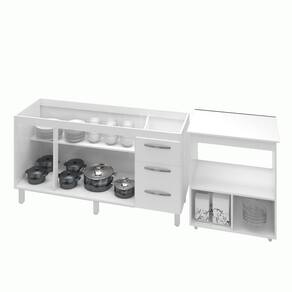 Características do kit montado: Largura 213 cm (lado a lado os dois balcões). Profundidade: 50 cm Altura: 85,5 cm (Altura do balcão para cooktop com tampo) *Imagem meramente ilustrativa, não acompanha objetos decorativos, é somente os dois balcões.