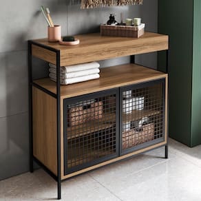 Torne seu banheiro um ambiente moderno e sofisticado com o Gabinete para Banheiro Industrial. Com um design inspirado no estilo industrial, este gabinete tem sofisticação e praticidade. Conta com um amplo espaço interno, e uma prateleira central trazendo elegância. Sua estrutura em aço com pintura Epoxi e composição interna em chapa MPD 15mm garantem durabilidade e charme, ideal para quem valoriza a funcionalidade do dia a dia. Este móvel chegará na sua casa separado em 01 volume.