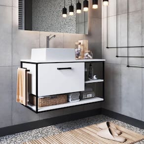 Transforme seu banheiro com o Gabinete Armário Suspenso 80 cm Branco P1007. Projetado para oferecer funcionalidade e estilo, este armário combina design moderno com praticidade, ideal para otimizar seu espaço e organizar seus itens de forma elegante. Possui 1 porta basculante com dobradiça metálica e puxador em plástico, 2 prateleiras que suportam 5kgs cada e 1 porta toalhas. Produto acompanha cuba em marmorite, necessita fixação na parede e suporta até 15kgs. Ideal para banheiros pequenos ou para quem deseja um ambiente mais organizado e funcional.