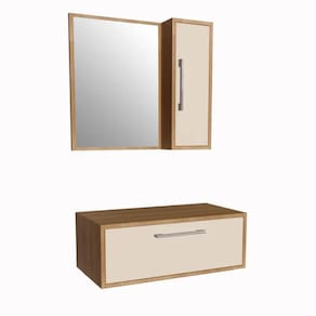 O conjunto CJ2011 é produzido em MDP 15mm e acabamento FF fosco. A espelheira possui espelho 3mm, 1 porta com dobradiça metálica, 2 prateleiras internas e puxador em ABS. Já o gabinete possui 1 porta basculante com pistão a gás e puxador em ABS. Estrututa do fundo em 3mm. Produto suporta até 10kgs. Conteúdo da embalagem: móvel, ferragens e manual de montagem. A fixação das peças e/ou acessórios é feita por parafusos e cavilhas. Necessita fixação na parede e acompanha os parafusos para a fixação. Para uma limpeza mais efetiva, utilizar apenas pano macio umedecido e sabão neutro. Não utilizar produtos abrasivos. Garantia de 03 meses contra defeitos de fabricação. Medidas do produto espelheira (AxLxP): 65x70x14cm. Medidas do produto gabinete AxLxP): 30x80x40cm. Peso total do produto: 20,55kgs. Não acompanha cuba. Marca: Não Informado