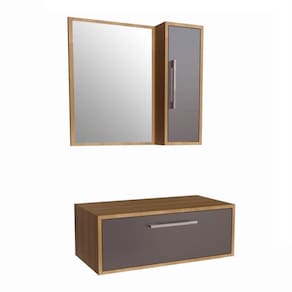 Armario Gabinete Suspenso Espelheira Alice Mel Grafite 80cm para Banheiro Com 1 Porta Sem Cuba