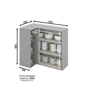 Modelo: Americana Modelo Americana Matéria-prima MDF Revestimento Pintura UV Acabamento Fosco Portas 1 Dobradiças Metálicas Puxadores Zamac Prateleiras 6 Observações Pode ser montado de ambos os lados -direito ou esquerdo-.