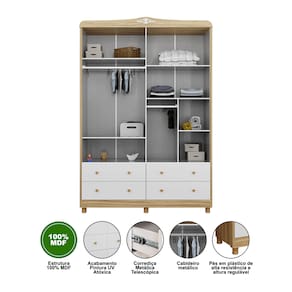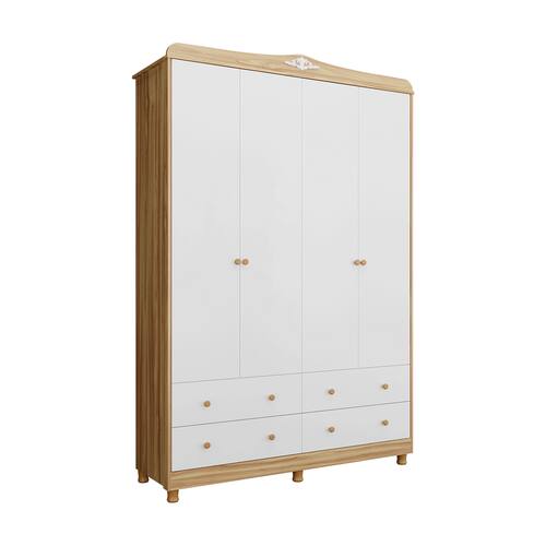 O Armário Infantil Elô 4 Portas Lisas é a escolha ideal para quem busca funcionalidade e charme no quarto do bebê. Produzido 100% em MDF, possui pintura UV atóxica, garantindo segurança e durabilidade. Seu caixote é fabricado em chapa de 12 mm, enquanto as frentes e molduras contam com chapa de 15 mm. Os pés injetados em plástico de alta resistência têm altura regulável, proporcionando estabilidade. Os puxadores também são em plástico, combinando com o visual moderno. Internamente, conta com cabideiro metálico, gavetas com corrediças telescópicas e amplo espaço para organização. Acompanha aplique decorativo opcional e permite adaptação de kit divisórias para gavetas (vendido separadamente).