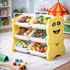 Organize brinquedos, livros e objetos de forma prática com a Estante Organizadora Infantil com 6 Gavetas.