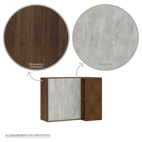 Características Corpo/Caixaria: MDP - Nogueira Dourado - FF. Frontais: MDP - Acabamentos em BP. Dobradiças: Ø35mm Slow motion. Puxadores: Alumínio Gola - Inox. Porta: 2 Prateleira: 2 Montagem com Minifix, Parafusos e cavilhas.