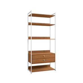 O Armário Kappesberg LI049 Canela/Branco da linha Crome Industrial é a opção perfeita para quem deseja unir praticidade e estilo. Com dimensões de 202cm de altura, 89cm de largura e 44cm de profundidade, possui 2 gavetas de 77cm de largura por 10cm de altura cada, ideais para organizar objetos menores, além de 3 prateleiras espaçosas que oferecem divisões de 30cm e 49cm entre elas, garantindo excelente aproveitamento. Conta ainda com prateleira inferior de 25cm, ideal para livros, decorações ou louças. Produzido em Metal/MDP com acabamento fosco/brilho, suporta até 7kg e pode ser utilizado como armário ou estante em diversos ambientes.
