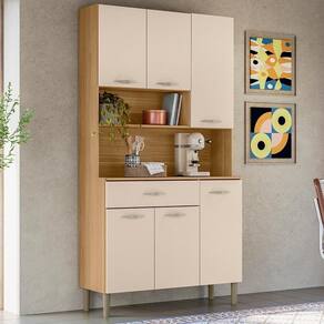 O Armário Kit Cozinha é perfeito para quem busca praticidade e estilo na organização do ambiente. Produzido em MDP de 12mm e 15mm, conta com 06 portas e 01 gaveta equipadas com dobradiças e corrediças 100% metálicas. O design conta com puxadores ergonômicos e pés fixos, ambos em plástico resistente (poliestireno e polipropileno), além de nichos decorativos. Com pintura UV, o acabamento do móvel oferece maior proteção, realce nas cores e facilidade na limpeza do dia a dia. Este móvel chegará em sua casa separado em 01 volume.