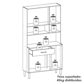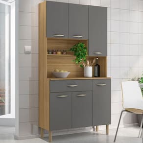 O Armário Kit Cozinha é perfeito para quem busca praticidade e estilo na organização do ambiente. Produzido em MDP de 12mm e 15mm, conta com 06 portas e 01 gaveta equipadas com dobradiças e corrediças 100% metálicas. O design conta com puxadores ergonômicos e pés fixos, ambos em plástico resistente (poliestireno e polipropileno), além de nichos decorativos. Com pintura UV, o acabamento do móvel oferece maior proteção, realce nas cores e facilidade na limpeza do dia a dia. Este móvel chegará em sua casa separado em 01 volume.