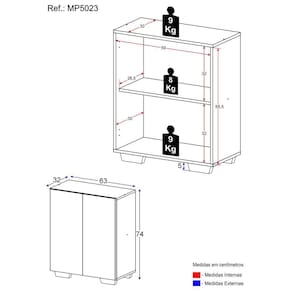 Dimensões do produto montado: Altura: 74cm | Largura: 63cm | Profundidade: 32cm *Você pode consultar as medidas internas na imagem técnica do produto.