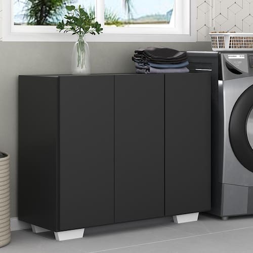 Armário Lavanderia Com 3 Portas 90 Cm Multimóveis Mp5034 Preto/branco
