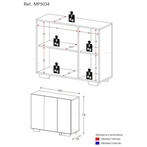Altura: 74cm | Largura: 90cm | Profundidade: 32cm