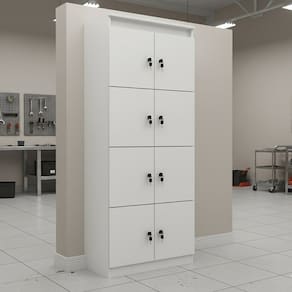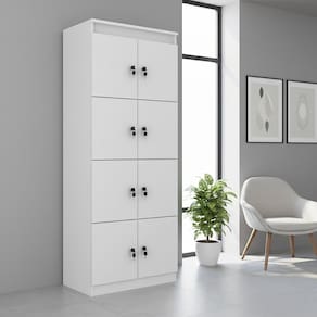 Perfeito para compor ambientes colaborativos, academias, office corporativo, , instituições de ensino, áreas de uso coletivo e clínicas. Cada compartimento é único e conta com chave individual garantindo mais privacidade e proteção aos seus usuários. Com estrutura robusta em MDP e design inteligente, o organizador locker da Tecno se integra facilmente a diferentes espaços, promovendo funcionalidade sem abrir mão do estilo e do bom gosto. Armário Organizador Locker Guarda Volume 60x160x36cm em MDP com compartimento de 08 Portas com Chave Me4202. A decoração do ambiente não acompanha o produto. Ambiente Principal: Área de Serviço codigo_ean: 7900288288431 Complexidade da Montagem: Média: pode ser montado por mais de uma pessoa e/ou necessite de maior conhecimento para montagem Cor: Branco Cor da Estrutura: Branco Cor da Porta: Branco Cor do Produto: Branco Formato do Armário: Retangular Informações Complementares: 04kg cada nicho Itens Inclusos: 1 Armário, Kit Ferragens e Manual de Montagem Manual de Montagem e Instalação: https://product-hub-prd.madeiramadeira.com.br/780958354/documents/e1eef4de-5522-4106-8db7-5fcbbacb47b933231226417628881956693.pdf Marca: Tecno Mobili Material Principal: MDP Necessita Montagem: Sim Origem do Produto: Nacional Peso Suportado por Compartimento (Kg): 4 kg Porta com chave: Sim Quantidade de Colunas do Armário: 1 Quantidade de Linhas do Armário: 1 Suporta Até (kg): 16 kg Tipo de Armário Multiuso: Locker