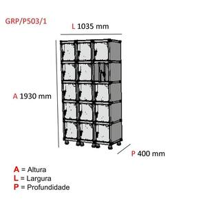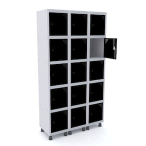 Armário Locker Roupeiro 15 Portas Aço Grp 503/15 Pandin Móvei Cinza/Preto