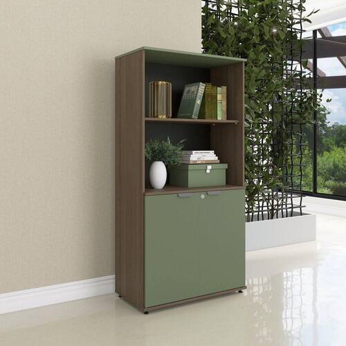 Armário Misto para Escritório 2 Portas com Chave 160cm Linha P15 Walnut/Sálvia -