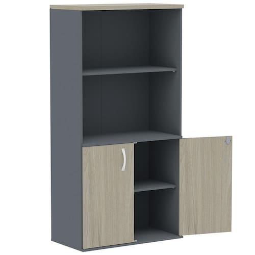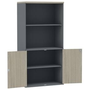 Armário Misto PE25 Pandin 79,20 cm (largura) em MDP Cor Nogueira CasaBlanca e Grafito com Duas portas e Prateleira superior - Bege