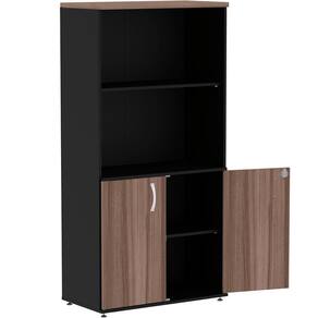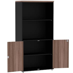 Armário Misto PE25 Pandin 79,20 cm (largura) em MDP Cor Walnut e Preto com Duas portas e Prateleira superior - Marrom