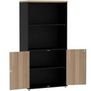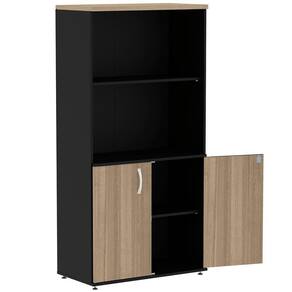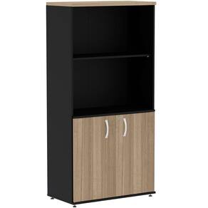 Armário Baixo Credenza Pe50 Pandin 140 Cm (largura) Em Mdp Cor Walnut Detalhe Preto Com Quatro Nichos E Duas Portas Ideal para seu escritório o armário baixo credenza com nicho duplo PE50 em MDP é mais um móvel de extrema qualidade da linha PE50 Pandin. É o móvel que não pode faltar para compor seu ambiente e deixa-lo completamente compacto, organizado e com um bom design.