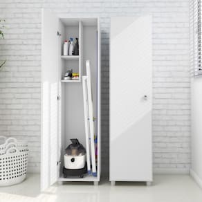 Ele é um armário multiuso 1 porta perfeito para auxiliar na área de ou cozinha, já que além da porta com puxador de metal, possui 2 prateleiras formando nichos para deixar seus itens sempre em ordem e de prontidão. Inclusive, é fabricado em MDP com acabamento em pintura UV conferindo brilho, durabilidade e resistência. Ou seja, tudo que precisamos em um multiuso eficiente e prático!