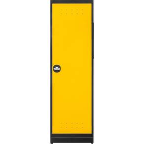 Armário multiuso com 1 porta, todo confeccionado em aço carbono e com pintura eletrostática a pó, que aliados à fechadura reforçada (acompanha duas chaves), garantem maior segurança e durabilidade ao produto. Seu design, com uma porta inteiriça e 4 vãos internos, sendo um deles com a toda a altura do armário, proporciona ótimo aproveitamento de espaços, permitindo organizar objetos e utensílios de limpeza maiores, como vassouras e rodos.