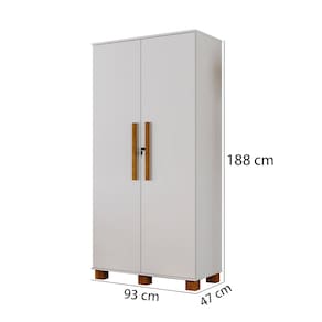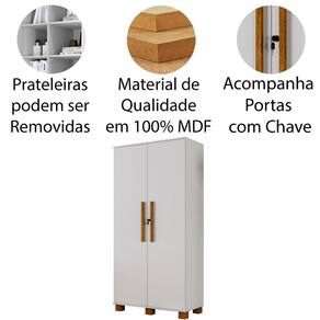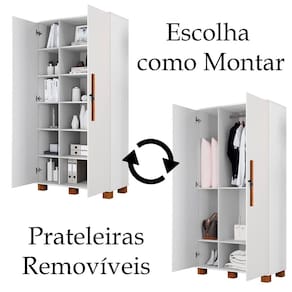 Este armário multiuso foi desenvolvido para oferecer o máximo de funcionalidade e elegância em um único móvel. Produzido em 100% MDF, garante resistência, durabilidade e excelente acabamento com pintura UV, proporcionando um visual sofisticado que se adapta a diferentes estilos de ambiente. Suas duas portas com dobradiças metálicas e chave garantem segurança e fácil acesso aos compartimentos internos, tornando-o ideal para guardar roupas, calçados, utensílios ou documentos. Com 10 prateleiras bem distribuídas, sendo três delas removíveis, o móvel permite ajustar o espaço interno conforme a necessidade, acomodando objetos de tamanhos variados de forma prática e organizada. O cabideiro em alumínio amplia as possibilidades de uso, permitindo pendurar roupas e manter tudo sempre no lugar. Os puxadores em MDF e os pés em madeira natural reforçam o design elegante e o cuidado nos detalhes, proporcionando estabilidade e um toque decorativo que valoriza o ambiente. Com altura de 188 cm, este armário é perfeito para quem busca aproveitar bem o espaço vertical sem abrir mão da estética e da funcionalidade.