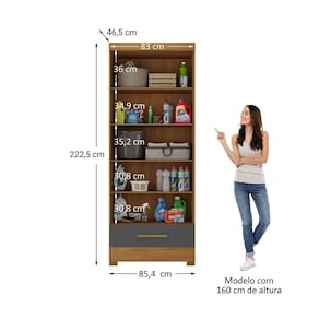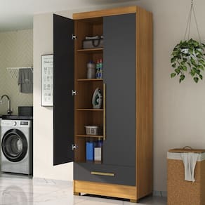 O Armário Modulado Smart, é uma solução moderna e funcional para otimizar espaços. Suas divisões, chapéus e prateleiras são feitas em MDP de 1,2cm, laterais, gaveta, rodapé e portas em MDP de 1,5cm, ambos em material de alta qualidade. O fundo do roupeiro e da gaveta tem 0,3cm de espessura. Possui corrediças telescópicas suaves, interior na cor do produto, puxador em MDF e cabideiro em alumínio. Oferece quatro possibilidades de montagem interna elencadas em seu manual de montagem de fácil entendimento. Ideal para quem busca praticidade, estilo e organização em um único móvel. Acabamento da Gaveta: Fosco Acabamento da Porta: Pintura UV Acabamento da Prateleira: Pintura UV Acabamento dos Pés: Plástico Acompanha Manual de Instalação: Sim Altura dos Pés: 5,5 cm Altura Máxima dos Pés: 5.5000 Ambiente Principal: Área de Serviço codigo_ean: 7900288238771 Complexidade da Montagem: Baixa: pode ser montado por uma pessoa sozinha Cor: Cinamomo/Cinza Cor da Estrutura: Bege Cor do Produto: Cinamomo/Cinza Escala de Brilho: Fosco Escala de Brilho da Porta: Fosco Escala de Brilho da Prateleira: Fosco Gaveta com Chave: Não Itens Inclusos: 1 Armário, Kit Ferragens e Manual de Montagem Linha ou Coleção: Smart Manual de Montagem e Instalação: https://product-hub-prd.madeiramadeira.com.br/960899525/documents/56789579-e6ed-45c0-9689-8ff1633dcbf93192539234117575068315525.pdf Marca: Espresso Móveis Material da Gaveta: MDP Material da Porta: MDP Material da Prateleira: MDP Material dos Pés: Plástico Material Principal: MDP modular: Sim Montagem Flex: Sim, interior do produto pode ser montado da forma que o cliente desejar, contendo 4 opções elencadas no manual de montagem. Necessita Montagem: Sim O Módulo Pode ser utilizado individualmente: Sim Origem do Produto: Nacional Pés Reguláveis: Não Pés Removíveis: Sim Peso: 57,75 kg Peso Máximo por Gaveta: 5 kg Peso Máximo por Prateleira: 7 kg Possui Cabideiros: 01 Possui Espelho: Não Possui Pés: 04 Possui Suporte para Vassoura: Não Quantidade de Puxadores: 02 Recomendações de Uso, Manutenção e Limpeza: Limpar com flanela ou pano macio seco, não utilizar produtos abrasivos, desengordurantes, álcool ou qualquer outro produto químico. Não expor o produto diretamente à luz solar e à umidade Sapatas Niveladoras: Não Sistema de Montagem: parafusos, cavilhas e cantoneiras Suporta Até (kg): 20 kg Tipo de Armário Multiuso: Alto Tipo de Corrediça da Gaveta: Metálica Telescópica Tipo de Dobradiça/Corrediça da Porta: Metálica Tipo de Porta: Bater Tipo de Puxador da Gaveta: Externo Tipo de Puxador da Porta: Externo