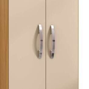 As dobradiças metálicas e os puxadores cromados adicionam funcionalidade e estilo ao armário, enquanto o sistema de montagem simples facilita a sua instalação.