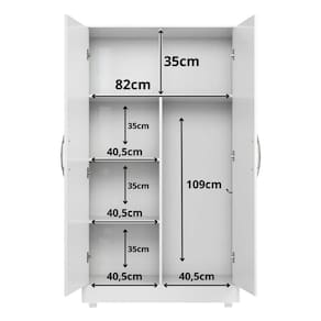 Medidas: Altura total: 158 cmLargura total: 90 cmProfundidade total: 39 cmAltura da porta: 146 cmLargura da porta: 41 cmLargura da prateleira maior: 82 cmProfundidade da prateleira maior: 37 cmLargura da prateleira menor: 40,5 cmProfundidade da prateleira menor: 36,5 cmProfundidade com porta aberta: 78,5 cm