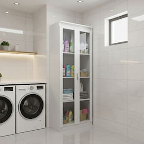 O Armario Multiuso 2 Portas com Vidro AM3111 Tecno Mobili une estilo e organizacao para diversos ambientes. Produzido em MDP 15 mm e acabamento BP, conta com 2 portas com vidro, puxadores perfil, dobradicas caneco e prateleiras internas que auxiliam na arrumacao dos objetos. Sua estrutura e resistente e acompanha sapatas deslizadoras, garantindo estabilidade.