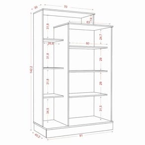 Dimensões: Altura: 142,2 cm Largura: 91 cm Profundidade: 40 cm Peso: 37,30 kg